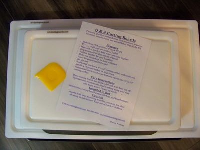 Included in Box: Each purchase includes a cutting board, a removable tray, a board scraper, and complete care instructions.